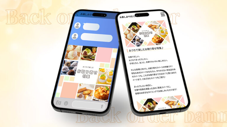 ECサイトで取り扱う商品の中から「家族で楽しめるスイーツ」に特化して特集したページの紹介と、記事内トップに表示するバナーです。記事に興味を持ってもらい、最終ゴールは商品の購入としました。