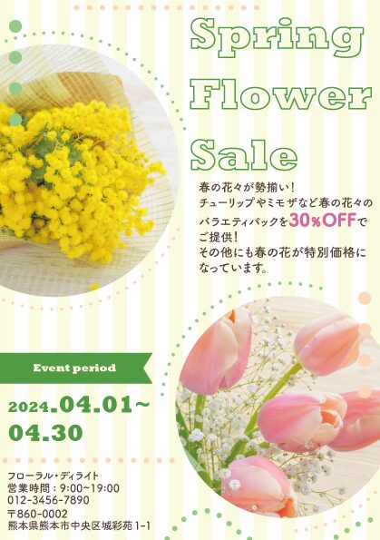 ・背景を淡い黄色にし、丸をあしらうことで柔らかく春らしい雰囲気にしました。