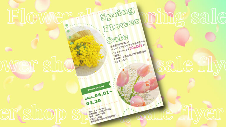 ・背景を淡い黄色にし、丸をあしらうことで柔らかく春らしい雰囲気にしました。